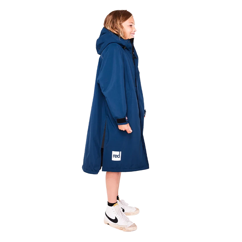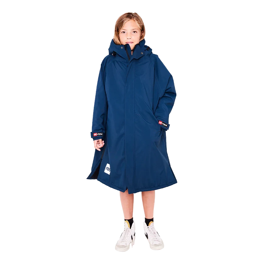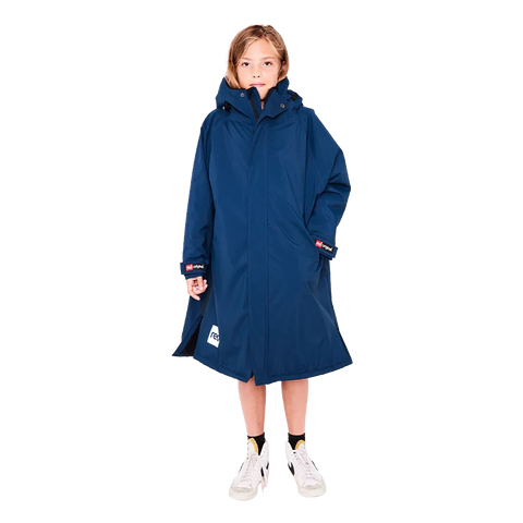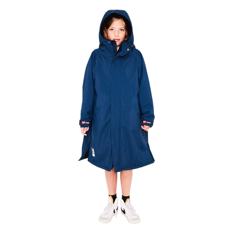 Its technical 8k/3k waterproof PFC-free DWR fabric provides excellent water run-off to keep kids happy and dry, while the navy sherpa-fleece lining carries all the same qualities of a warm hug.