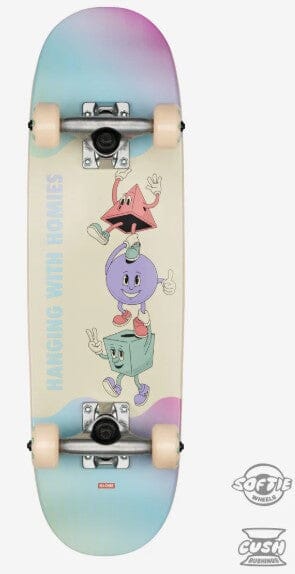 Kids Wide Micro Hangin is a scaled-down modern shape, short wheelbase complete board, designed especially for kids around the ages of 6-8 years old. The Resin-7 ply Hard Rock Maple deck is 7.125 wide x 25 length x 11 wheelbase and has mellow concave. It comes complete with 4.25 Tensor Alloy trucks that have softer bushings to make turning easier for lighter riders, and 51mm wide 95a street wheels.