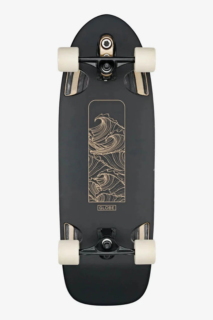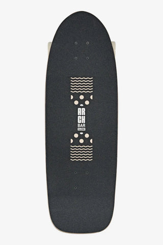The Walrus - Black/Peaking is our ultra wide surf/skate cruiser with built-in arch bar for locked-in control during surf-like manoeuvres. 10.25" x 31" x 16" wb of Resin-7 hard rock maple rolling on Slant Surf/Skate trucks and 83a Dragster wheels with die-cut griptape. Try it and feel the difference!