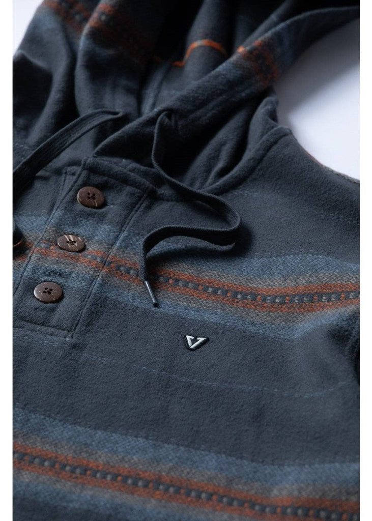 The Dawn Patrol just got a bit cozier with our native-isnpired Descanso Hoodie – an essential soft brushed heavy weight popover. Styling includes a 6" button down placket with hood and drawcord. Kangaroo pocket and center back seam. Heavy garment wash.