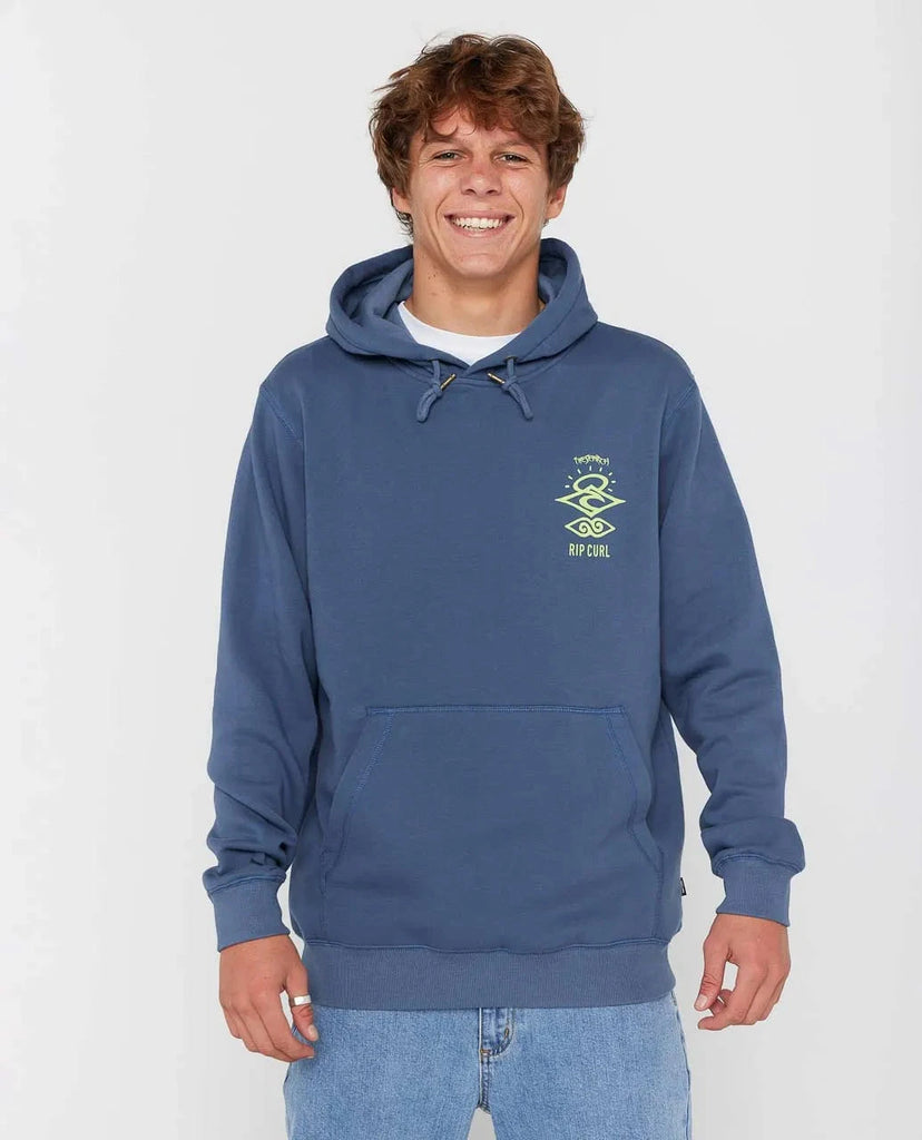 Stay warm and stylish in the Search Icon Hood, featuring a woven flag label, kanga pocket, and front and back print for a trendy and versatile surf look.