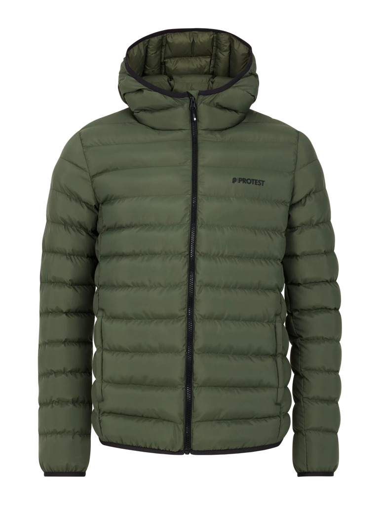 Keeping warm just got hotter: the PRTBASSO outdoor puffer jacket by Protest. Sporting a design in a solid colour with contrasting zip and piping around the fixed hood, the PRTBASSO exudes style with a playful twist. The water-repellent PRTBASSO is as functional as it is stylish. It’s also been designed with the environment in mind, being made of recycled fabrics. That’s why it’s part of our PVRE Green series. The elasticated cuffs fit snugly around wrists and lock in the warmth. The zippered side pockets ideal for storing belongings. The puffer jacket has a regular fit with a shorter length to add a touch of style.
