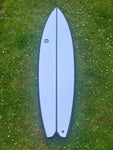 The key aspect of this board is the hydroplane hull running through the bottom of the board. The hydroplane hull uses the water it is on for lift rather than buoyancy, as well as speed, drive and manoeuvrability.