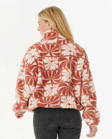 Made from recycled polyester microfleece, this standard-fit polar fleece features an all-over yardage print and silicon badge. A perfect cozy layer for chilly evenings by the ocean or casual outdoor activities.