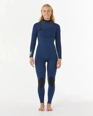 For flexibility without compromise, the Womens E-Bomb 5/3 Chest Zip Wetsuit Steamer combines E7 and E6 thermo linings with critical taping and sealed cuffs to keep warmth in and water out.
